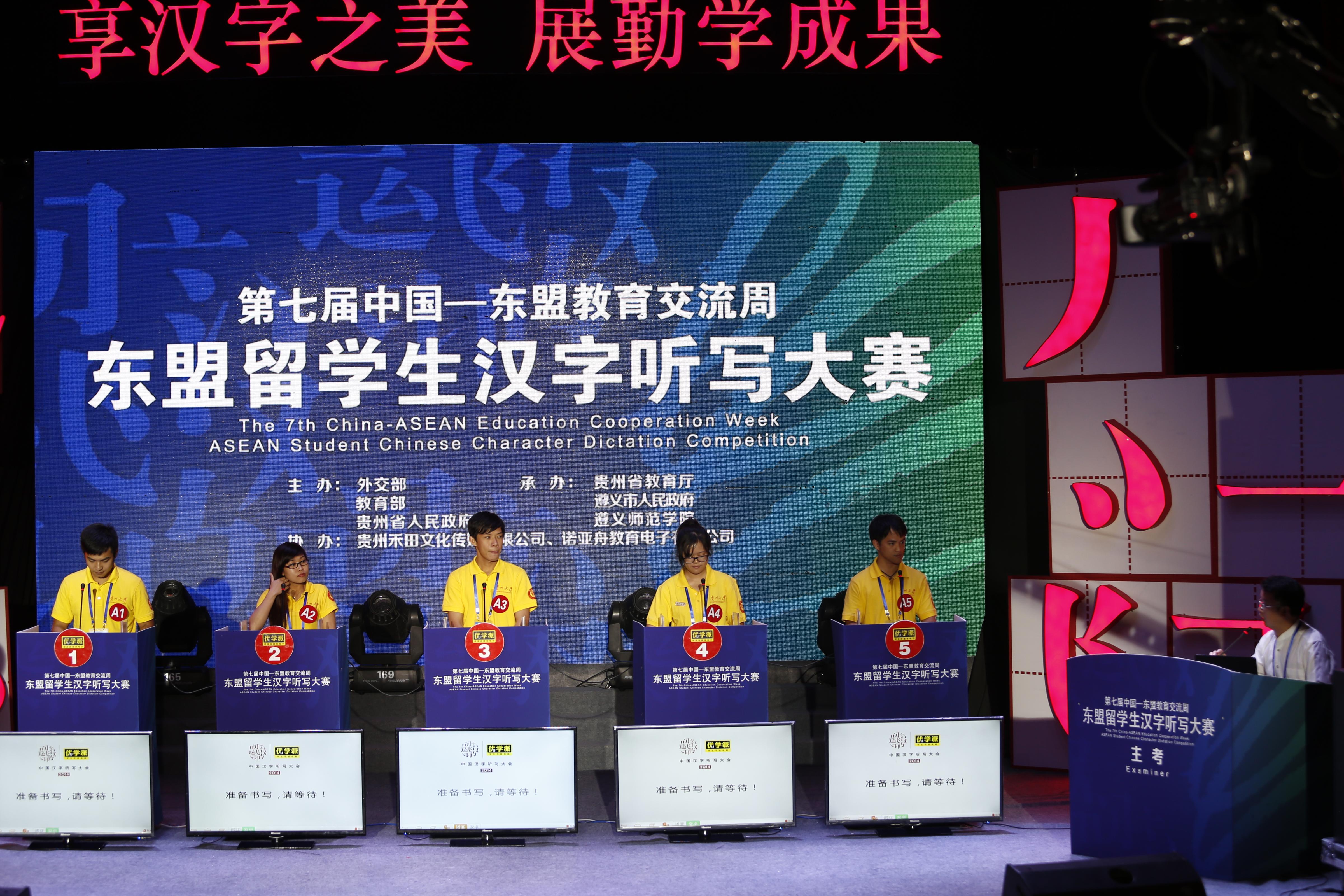 9月4日,遵义师范学院音乐厅热闹非凡,座无虚席,现场气氛高涨,情绪热烈,因为第七届中国东盟教育交流周东盟留学生汉字听写大赛正在这里举行。东盟留学生齐聚一堂,共同探究汉字的奥秘,领略汉字的风韵,展示学习汉语的成果,共同感受悠远灿烂的中国文化。 省人大常委会党组成员、副主任傅传耀,市委常委、副市长李辉,市...