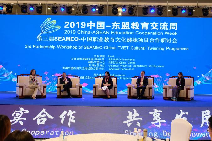 2019年7月22日至26日,以“深化务实合作、共享发展成果”为主题的2019中国-东盟教育交流周在贵州贵安新区交流周永久会址举办。本届交流周聚焦高等教育合作、职业教育合作、学前教育合作、高校创新创业合作、继续教育校企合作、汉语国际教育、教育培训项目、青少年交流等10个平行主题,除会见活动、开幕式及7项现场展示活动外,还举办了研讨会、论坛、竞赛、展览、夏令营、洽谈会、培训班等22项子项目活动。