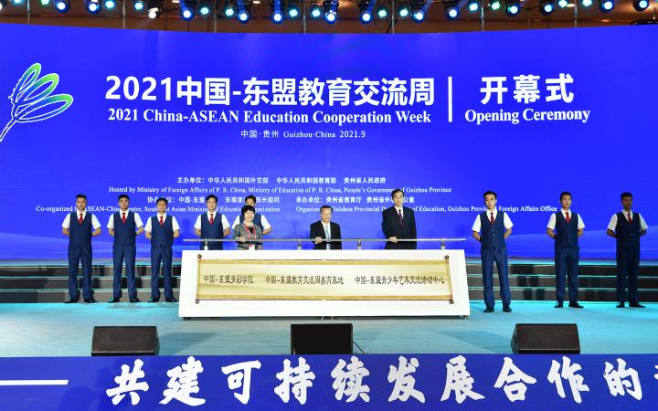 2021年9月23日至29日,以“知行合一——共建可持续发展合作的教育愿景”为主题的2021中国-东盟教育交流周在贵州贵安新区中国-东盟教育交流周永久会址成功举办。交流周开幕期间围绕教育可持续发展合作、后疫情时代的教育交流与合作、青年创新创业、青少年跨文化交流、创新人才培养、语言文化交流等主题共举办配套活动24项,举办深化东西部协作和服务教育高质量发展的内部活动5项;校际、校企间签署合作协议或备忘录(达成合作意向)72份;建成实体化成果项目3个,成立合作机制联盟(中心)7个。
