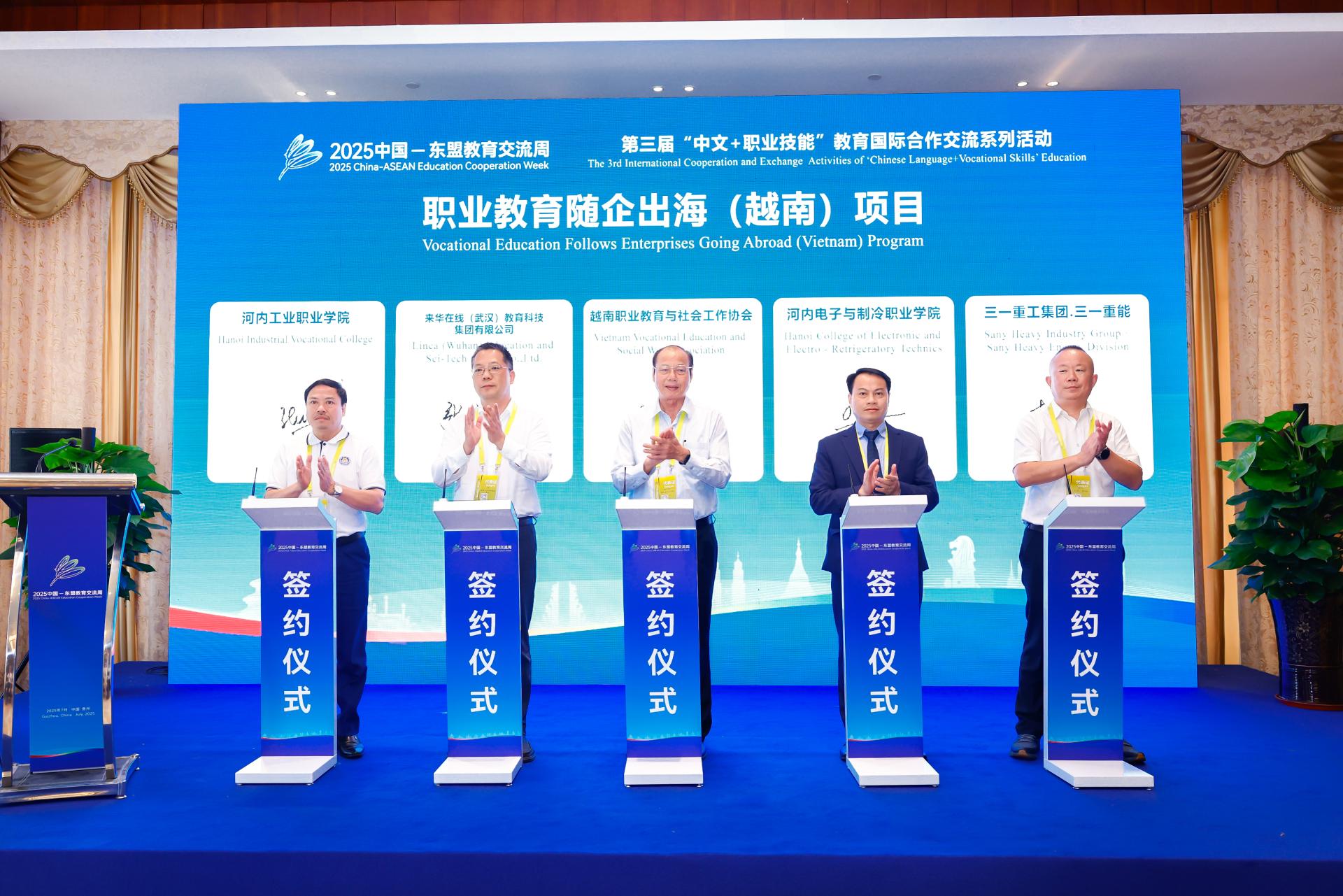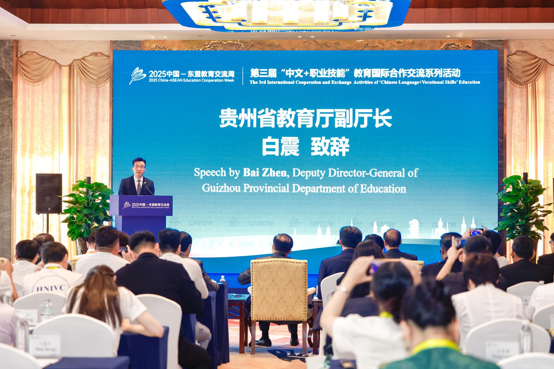 2025 年7月27日,由铜仁职业技术大学、黎明职业大学、贵州健康职业学院主办,来华在线(武汉)教育科技集团有限公司协办的第三届“中文+职业技能”教育国际合作交流系列活动在中国-东盟教育交流周永久会址举行。除了中国—东盟教育交流周永久会址主会场的现场活动,并通过“中国-东盟多彩智慧学院”视频会议系统面向海内外同步直播。