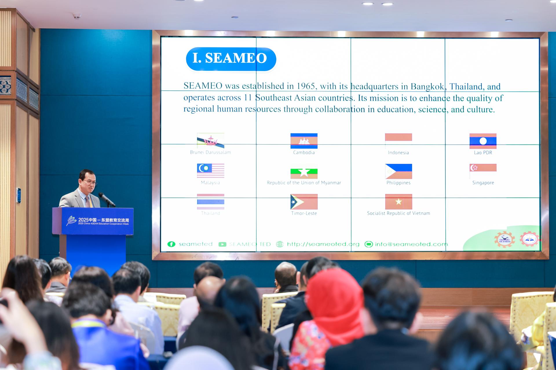 2025年7月27日,贵州建设职业技术学院在中国—东盟教育交流周永久会址二楼百花厅主办“融合创新·数字赋能——共建中国—东盟职业教育发展新生态论坛”。论坛邀请到中国和东盟教育官员、外交使节、国际组织负责人、各级院校校长、专家学者、青少年代表等95位嘉宾出席,其中国内嘉宾60人,国外嘉宾35人。