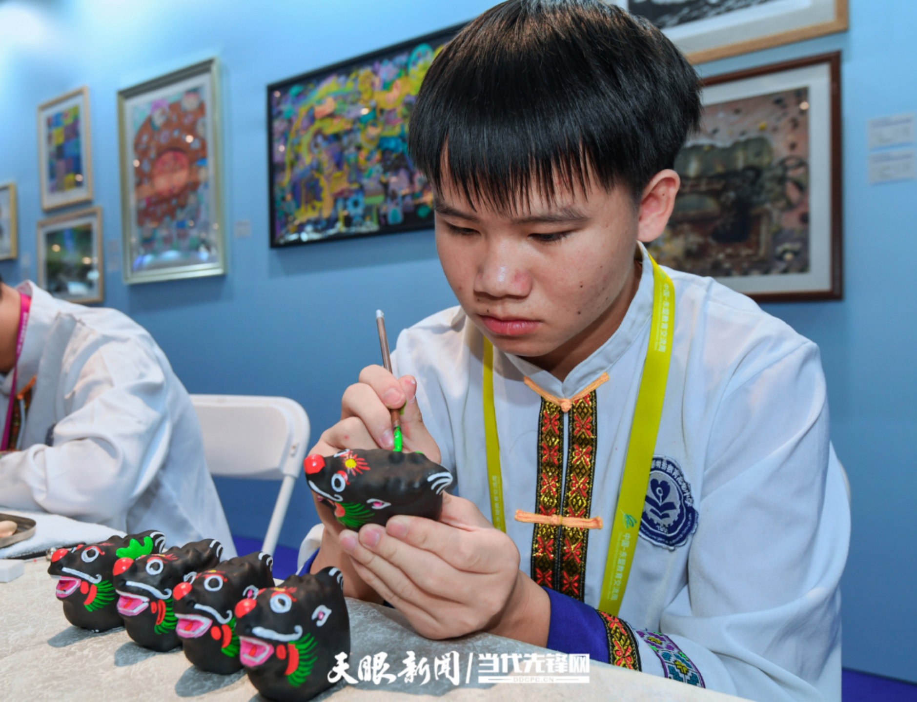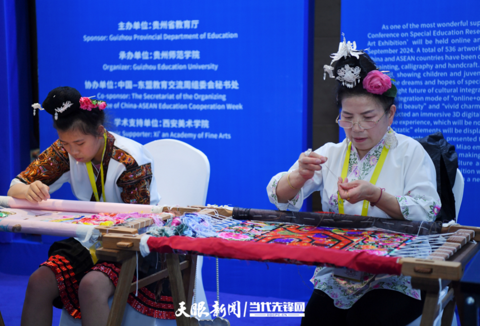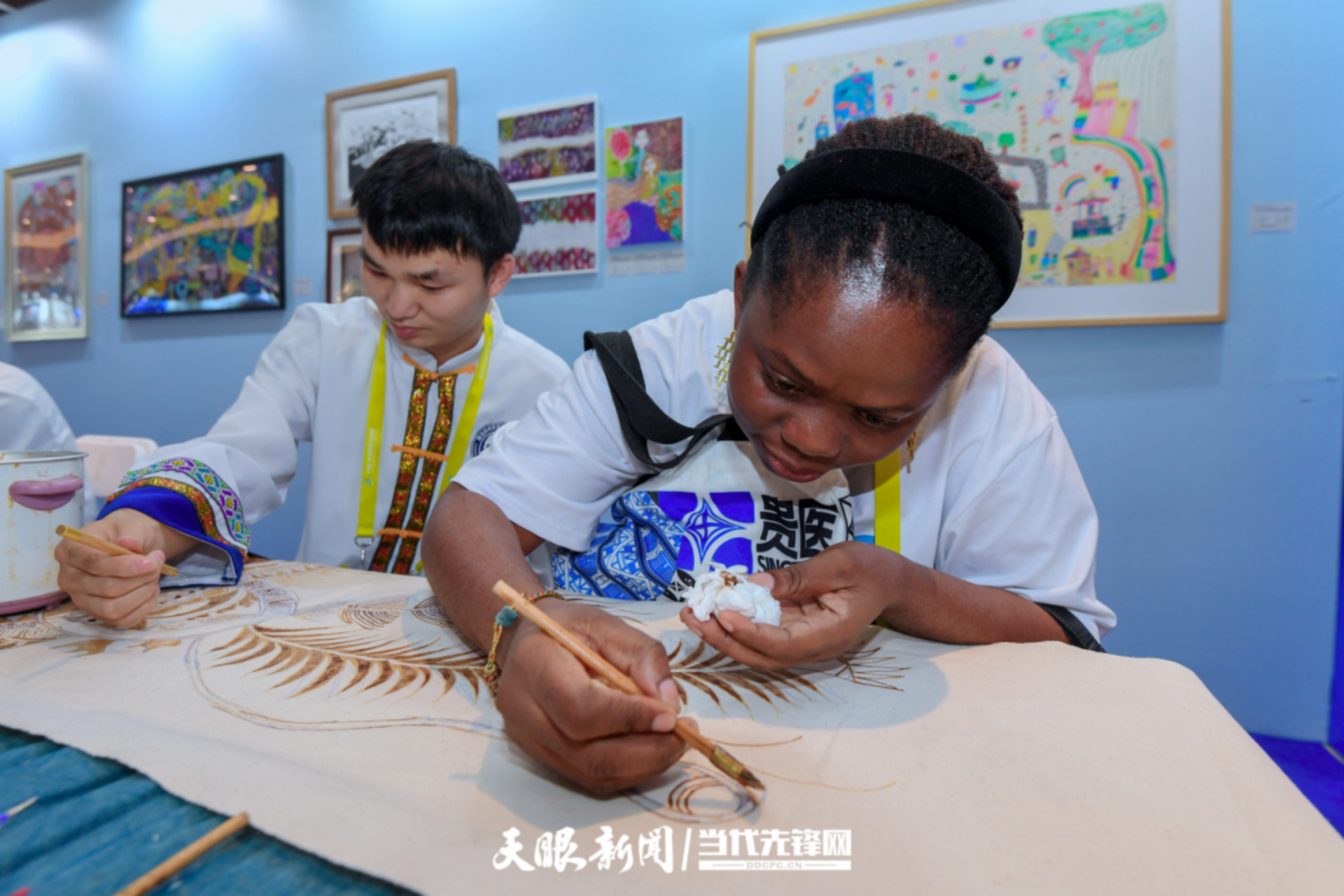 此次展览通过“动静结合”的方式向观众呈现。“静态”元素通过展板和展台精彩呈现,而“动态”元素则通过蜡染、苗绣、银饰制作等非遗传统手工艺互动体验,以及茶艺与制茶的实践操作,让艺术作品跃然眼前,跨越语言与文化的界限,共同诠释生命的多彩与坚韧。