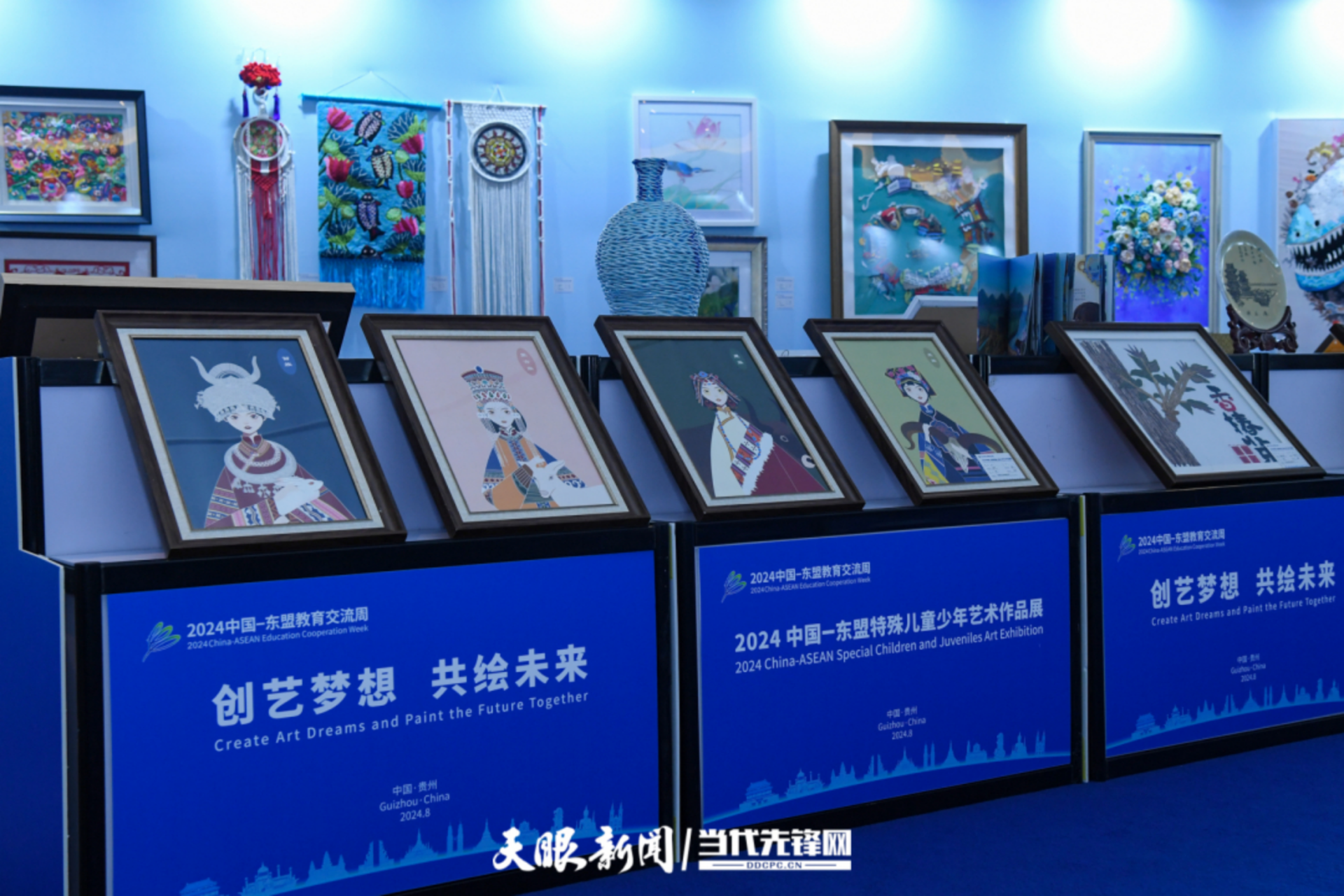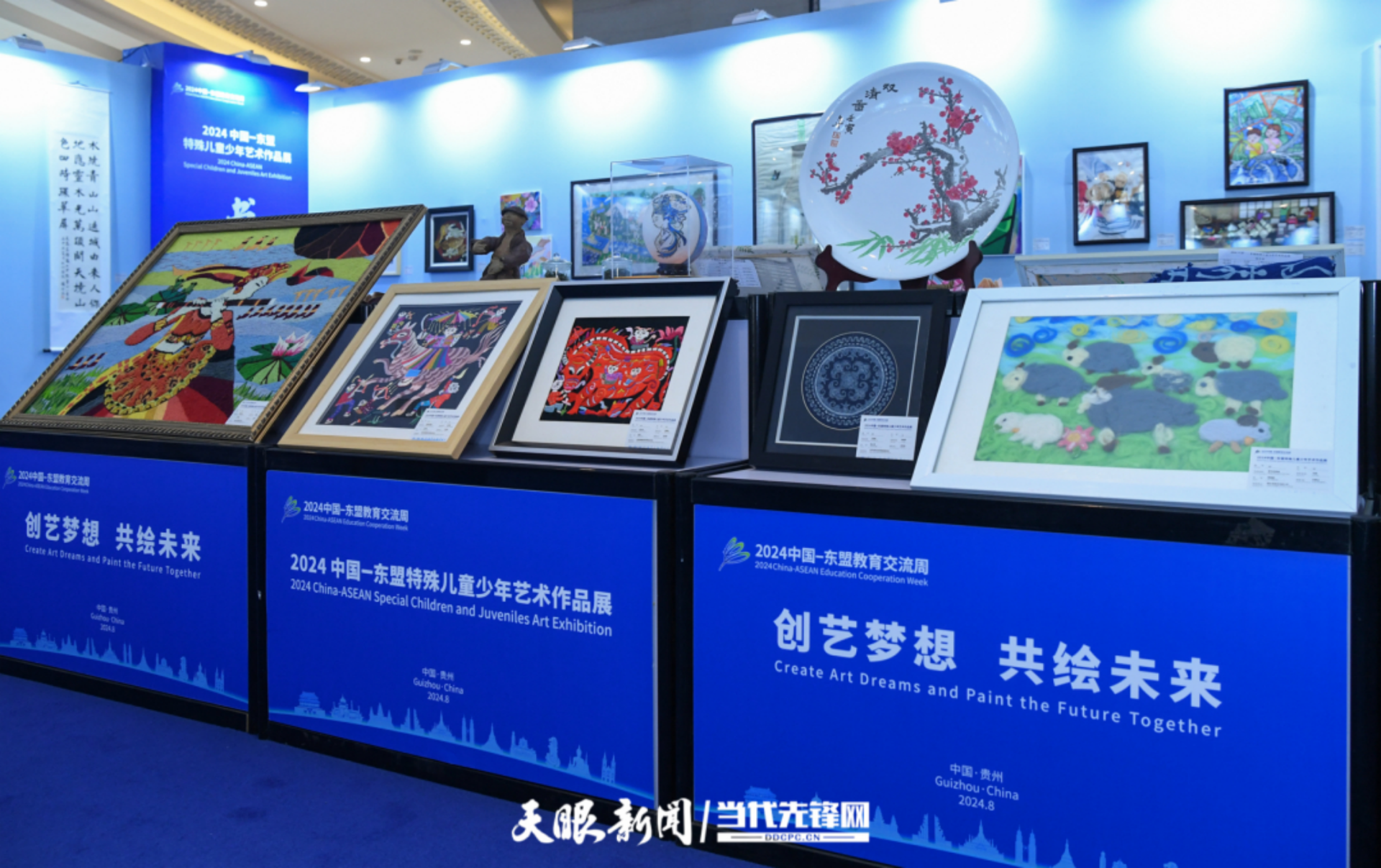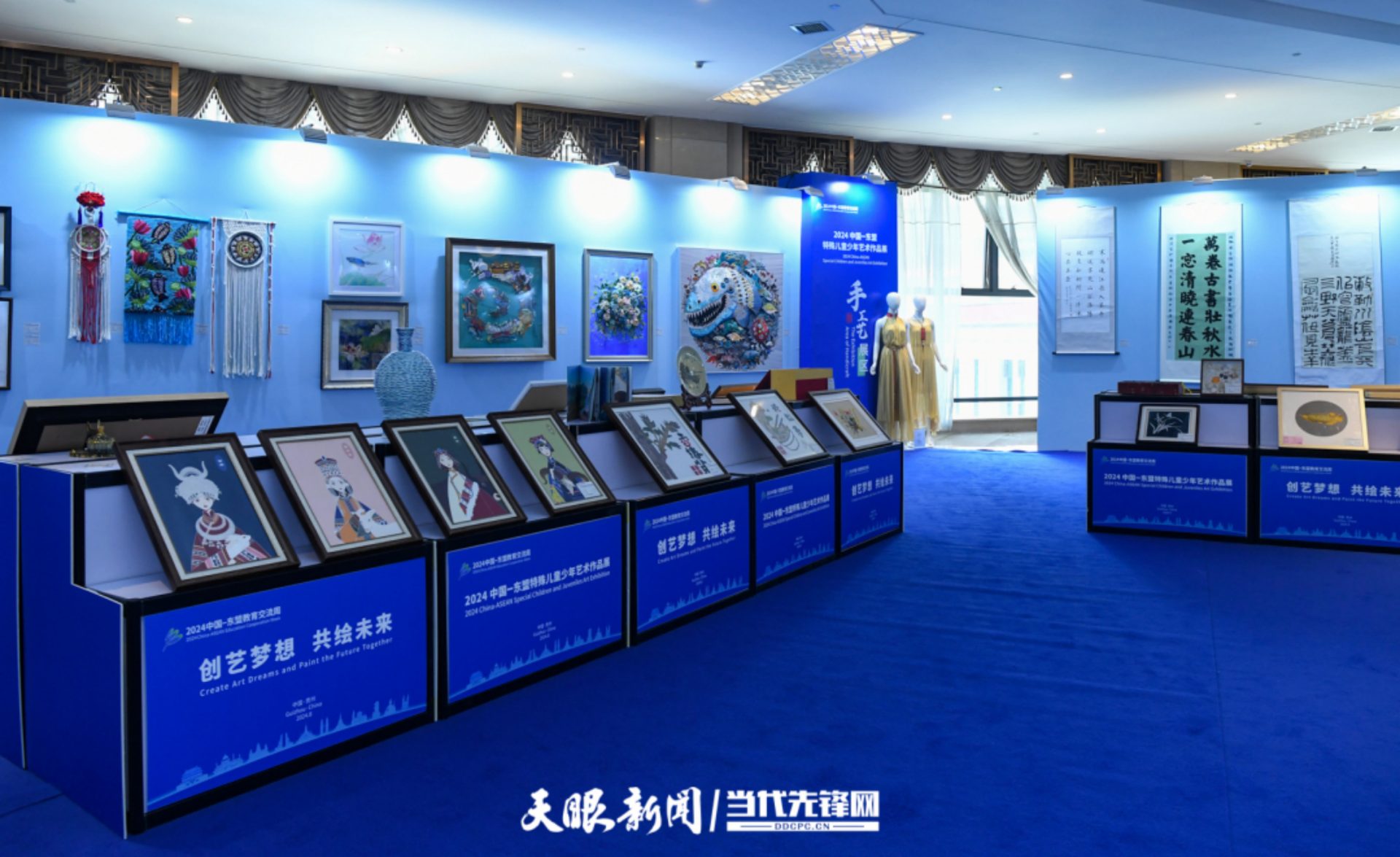 作为“2024年中国一东盟特殊教育国际会议”的配套活动,此次展览共征集来自中国和东盟国家的特殊儿童少年艺术作品536件,涵盖绘画、书法、手工等多种艺术形式。经过专家遴选,最终有130件优秀作品展出。