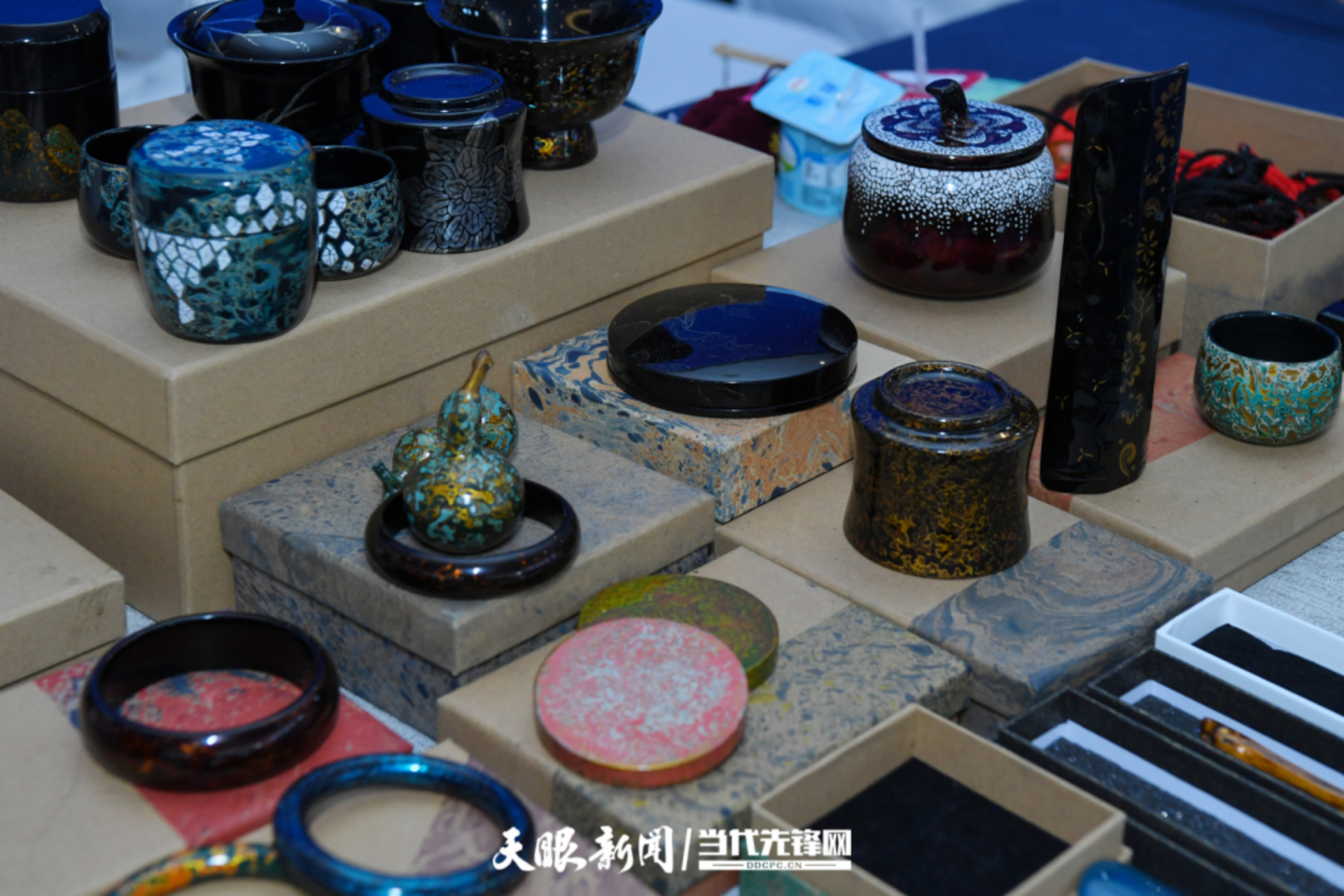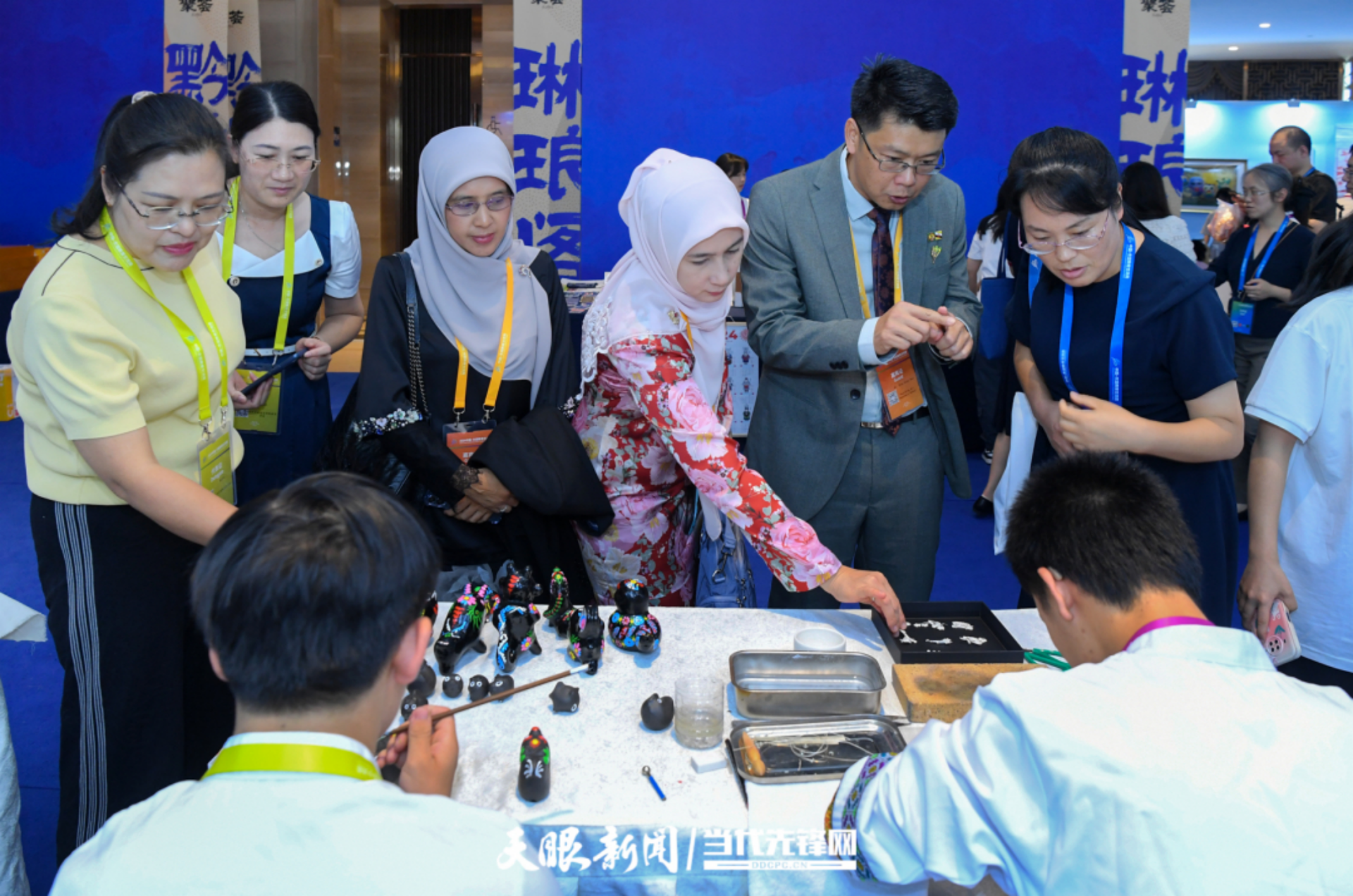 琳琅满目的非遗手工艺品吸引留学生代表参观