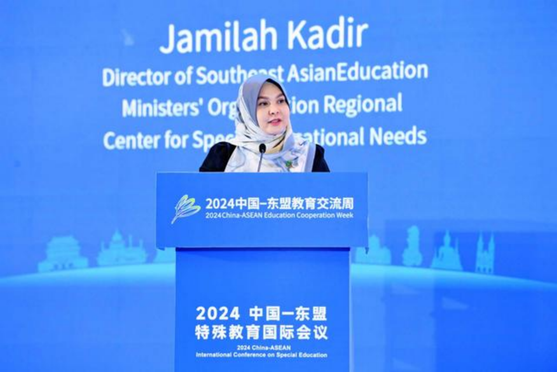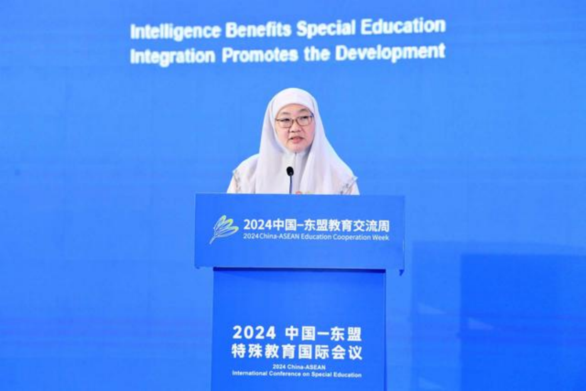 东南亚教育部长组织秘书长哈必芭在致辞中谈到,特殊教育是针对有特殊教育需要的人士的教育,特殊教育能够帮助他们充分发挥潜能,成为独立且有适应能力的人,能够让特殊儿童与普通孩子享受到同等的教育。