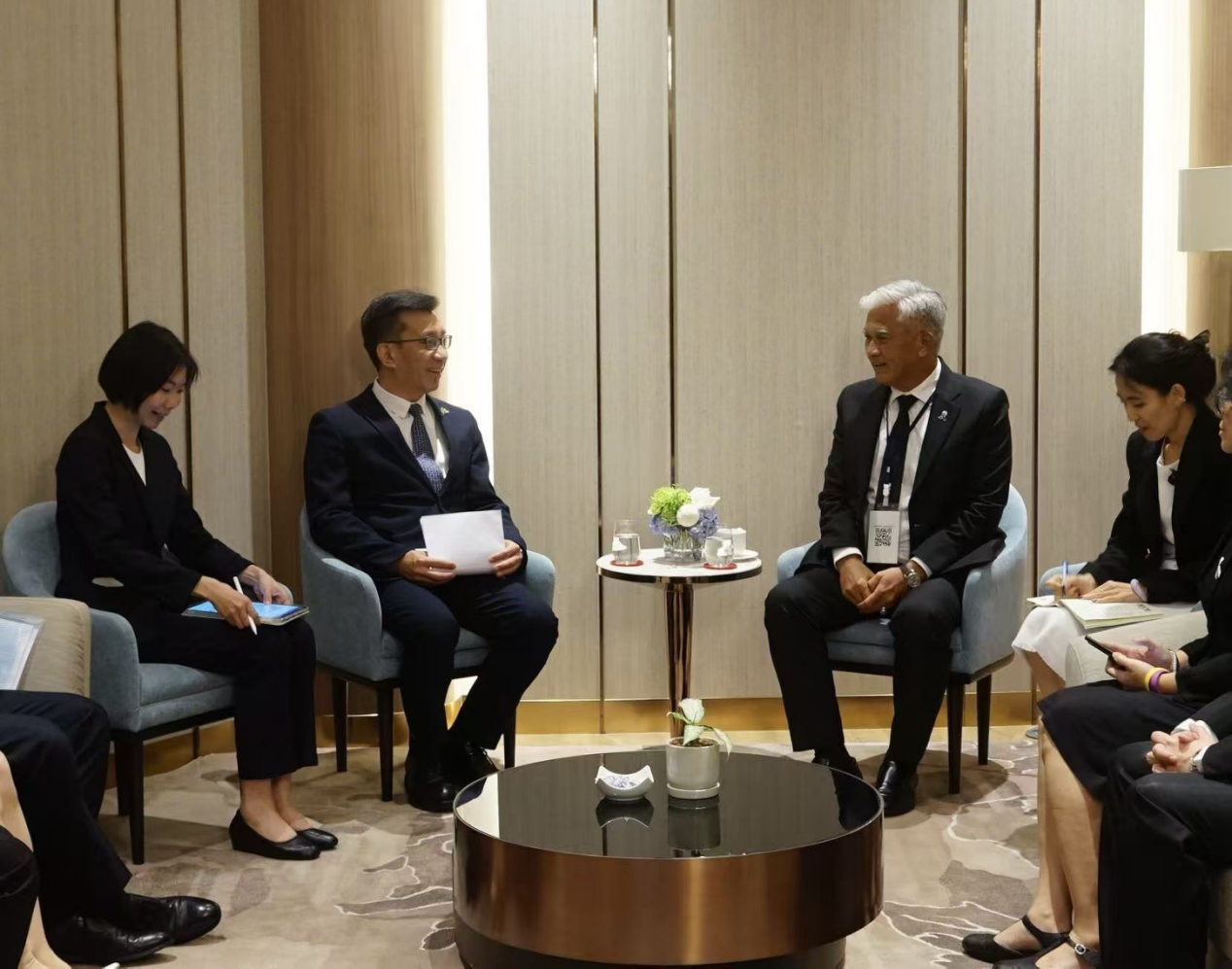 出席完东南亚教育部长高官会议后,白震拜会了泰国教育部次长素贴并举行了会谈,就加强贵州与泰国在职业教育、师资培训、青少年交流、数字教育合作、参与交流周平台建设等议题进行了充分交流并达成合作意向。素贴表示中泰两国文化相近,泰国教育部愿积极推动中泰教育交流合作,支持开展双向交流合作。